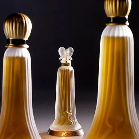 First launched in 1936 by famed French fashion designer Lucien Lelong, the new owners wanted to re-imagine it for today. We were inspired by the original perfume bottle and created bottles with a similar frosted draped motif topped with a matte gold ball caps.